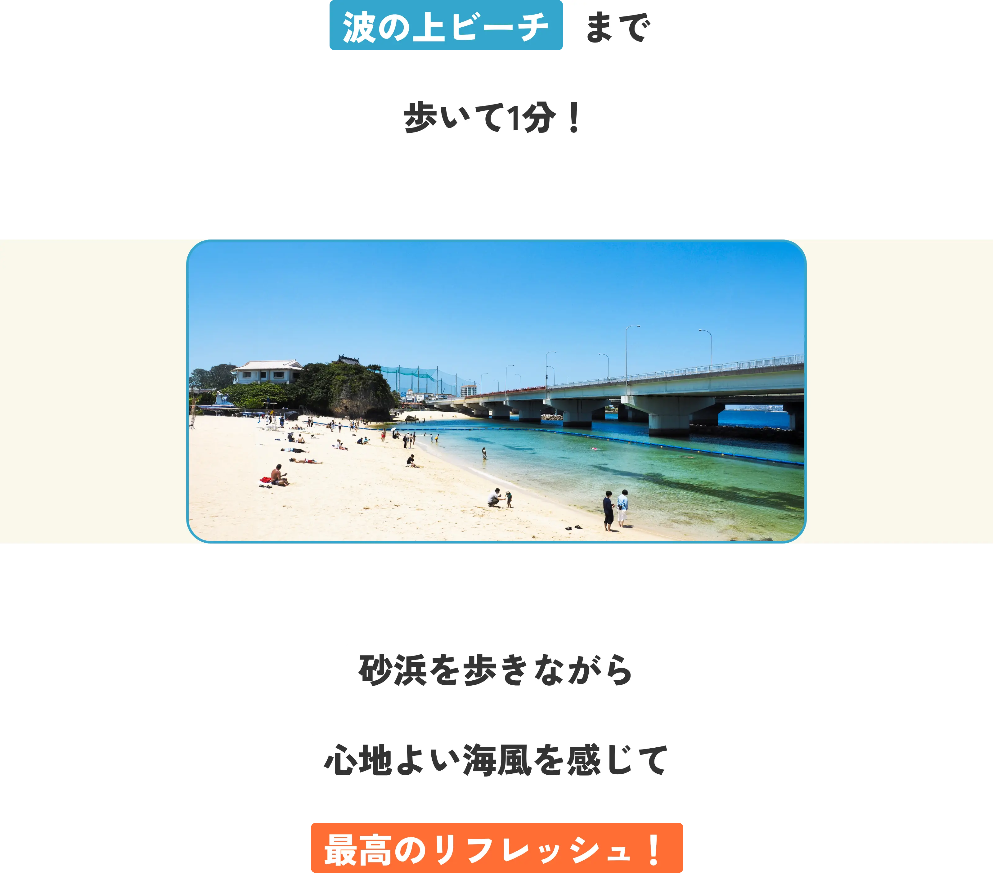 はい、那覇市唯一の遊泳ビーチである「波の上ビーチ」の横に施設があり階段でつながっています。BBQの前後にビーチをお楽しみいただくことも可能です。