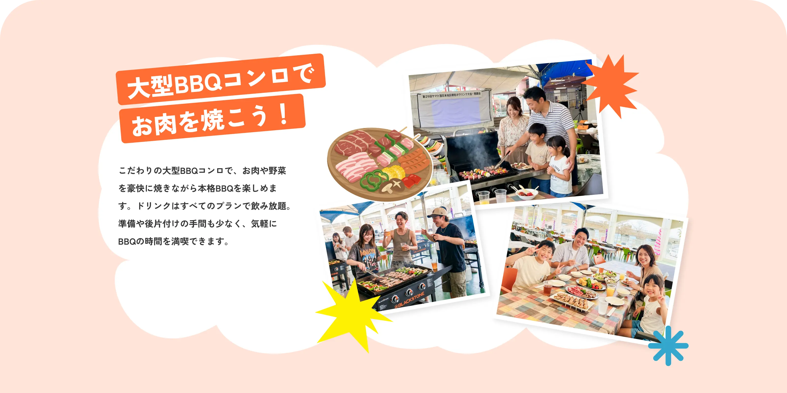 安全面を考慮し、バーベキュー設備の持ち込みはお断りしております。当施設の設備をご利用ください。